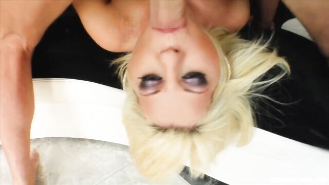 Andy is an adorable blonde cock sucker! She sucks off four horny guys. Her face gets loaded full of jizz. Andy get the perfect facial treatment.