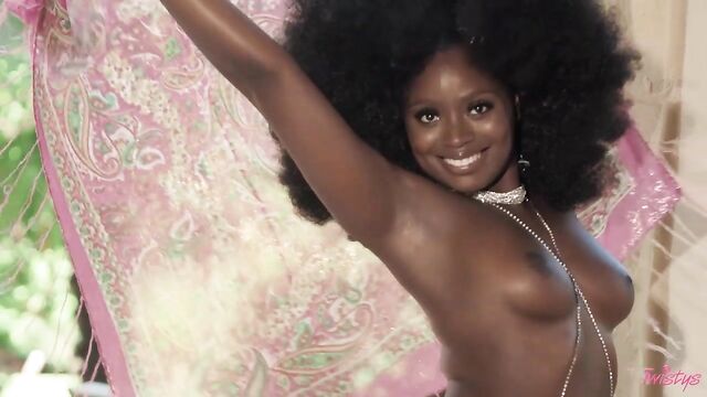 It's time for a bountiful harvest with your beauteous September Twistys Treat of the Month, Elsie! Join her in a paradisiacal garden as she takes a dip in a pool filled with rose petals, stripping out of her pink bikini to swim naked and twerk her booty in the water. Next, Elsie strolls through a sunny orange grove, plucking ripe fruit from the tree and teasing you as she takes off her bright lingerie to let the fresh juice run down her skin. Finally, Elsie does a sensual dance with a feathered fan and a shimmery shawl, wearing nothing but sparkling jewelry on her lush form. She shows you the meaning of delight as she uses a toy on her clit and fingers her pussy until she orgasms!