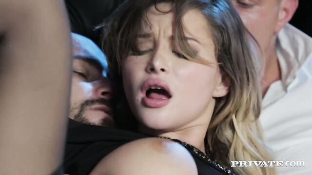 Anna Polina stars in Private’s “Whistleblower” and this high class slut gets her hands and lips wrapped around two big hard cocks. Then, she takes a hard face fucking while her pussy is being pounded by the other stud, this perky tit babe loves a spitroast. After her ass has been split with some hardcore anal, things get even rougher! She opens up both holes and takes some wild DP action before finally dropping to her knees and taking their cum all over her face.
