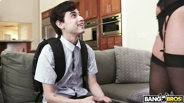 Brooklyn’s husband is about to get home and she wants awesome sex, so she dresses into sexy lingerie and takes her horny pill. When her husband finally arrives she starts dragging him to the bedroom he has to fuck her, she can’t wait any longer. But, he gets a phone call from work and has to go back. Brooklyn is upset and doesn't want to let him go, so she holds on to his leg to stop him from leaving. At that moment her stepson walks in and greets them. Then the husband takes the opportunity to finally free himself and leaves. Brooklyn is sad, upset and super horny, so she has an idea, she is gonna fuck her stepson. She approaches him, at first he is shocked, but she dominates over him and starts sucking his dick, then she makes him fuck her all over her living room until he delivers his hot load all over Brooklynn's face.