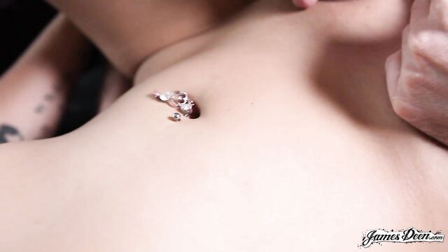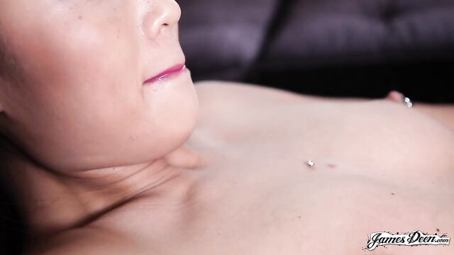- Description: Nymoi Star arrives at James Deen’s house wearing a printed tube dress. She confidently sits on the chair in front of the camera as the interview begins. According to Nymoi, she highly believes that whenever having sex or simply making out, the number priority is to make a woman cum. Whatever the circumstances are, the woman should reach orgasm and be satisfied. James finds that challenging because Nymoi is a woman. And he definitely has to make sure that she cums big time by just eating her pussy. The conversation between the porn stars took a little too long even though it simply revolved around pussy eating and making a woman cum. The next scene cuts into the Asian beauty now lying down on the black couch, butt naked. All her piercings over her body are exposed. The camera focuses on her pussy with James in between her legs and is devouring her pussy. As he licks and bites her clit, she closes her eyes, caresses her nipples until they harden and slightly moans. James slowly thrusts his warm tongue into her wet and tight pussy. He wants to make sure that she feels her own pussy opening up and welcoming her tongue inside. She obviously does as she looks down on him the moment his warm tongue is fully inside of her. As James thrusts his tongue in and out of her wet and tight pussy, she grabs his hands tightly. He knew that it was a sign. She is almost near. He stops and makes her get a hold of herself. Once she calms down, he gets back to action. James Deen once again inserts his tongue inside her tight pussy. He tonguefucks her until she is almost at her peak, Nymoi Star arches her back and smiles as she orgams. The scene ends with the camera focused on her pierced pussy.