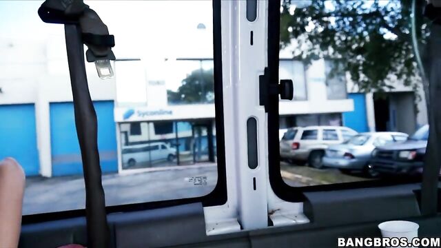 Look at what we have here. The sexy college chick that everyone is raving about. If you don't know who she is, look her up. It's the Duke student turned PornStar. Yup! You heard right. We're here hanging out with a fucking celebrity. On the BangBus! Belle sucked cocks, got fucked hard and took some facials. All of this happened while we took a trip through the streets of Miami. Come and see this petite brunette get her fat pussy beat down. Enjoy!