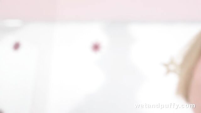 - Description: Merry Christmas from all of us here at Wet and Puffy! Blonde babe Rebeca is in the lounge and dressed in a playful little Christmas outfit! She kneels on a red chair and takes off her robe before she squeezes her tiny tits together, pulling down her bra to reveal her small nipples! She takes it off completely then bends over on the chair to touch her puffy pussy and pull her candy cane striped panties inbetween her lips. She slips a hand inside her panties and masturbates, then once she is naked, naughty Rebeca takes some pussy clamps from under the Christmas tree and clips them to her juicy cherry lips. She fingers herself before standing up to let the metal clips dangle from her labia then takes them off to lick them clean. Using a suction pump, this horny hottie pumps her pussy and enjoys the sensation as her juicy puffy pussy slides up the tube. She soon moves onto a big blue dildo which she uses to fill her pussy in all sorts of positions while masturbating at the same time. Rebeca gives herself the gift of an orgasm this Christmas!