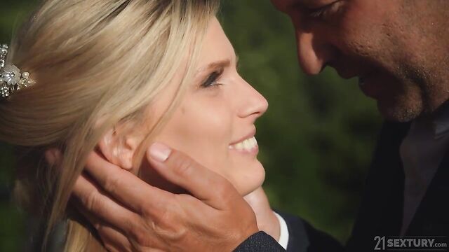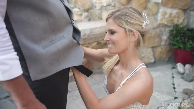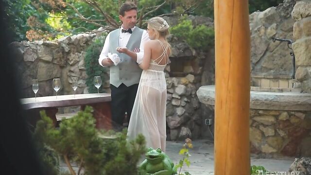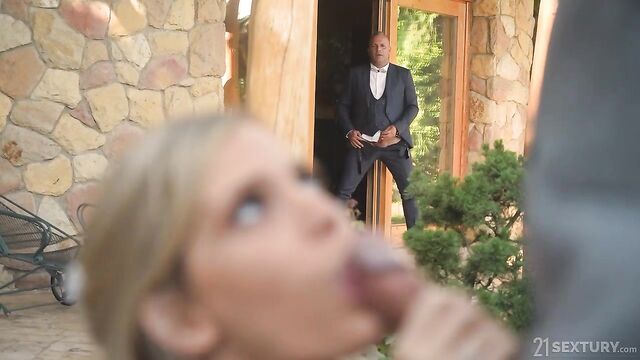 Pretty blonde Candee Licious and stud Thomas just got married and want to celebrate their love. What better way to do it than with a hot sex session? Candee gets an idea when she sees waiter David cleaning: she wants to be penetrated in her two holes.