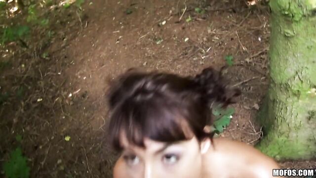 Suzy Rainbow doesn't know anyone in the UK, so whatever filthy stuff this Hungarian brunette tries will never get back to her boyfriend. Why not follow a stranger into the woods and have her dripping wet pussy fucked hard in doggystyle?