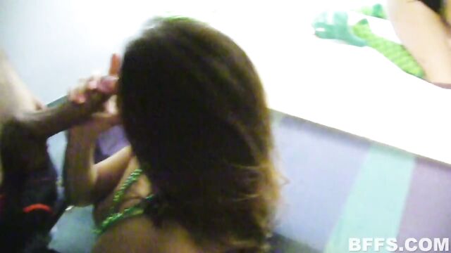 The reason I like St. Patricks Day so much is because it's super easy to get laid due to the plethora amount of crazy sluts roaming the streets that day. Today, we have a submission from some BFFs who were determined to get laid on St. patricks Day. After a load of partying in public, these out of town sluts pick up some random dudes and take them back to the hotel room! No fucking ! Why hasn't this ever happened to me? Anyway back at the hotel room, these chicks get down to business and seduce the fuck out of the 2 lucky dudes they picked up! It's was an all out fuck fest on St. Pattys!