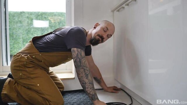 Jayna Kay couldn't believe how hot the plumber was that came to fix her drain and she immediately knew she was going to drain his dick dry before he left! She gets on top and rides it before getting on all fours and spreading wide open so he could fuck her so hard and deep that his balls slap against her pussy lips!