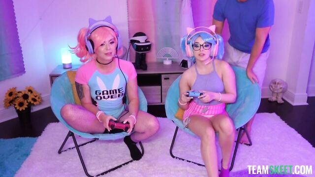 - Description: What’s up, Team Skeet fans? It’s time for a new Labs scene, so let’s jump in! For this update, we wanted to make a scene with gamer girls, a hot trend among many porn enthusiasts. Krissy and Leana try to out game one another, but Nicky does everything he can to pull their focus off the game and onto his cock. These bright-haired babes are resilient and try not to get too distracted, but it becomes more challenging the wetter and hornier they get.