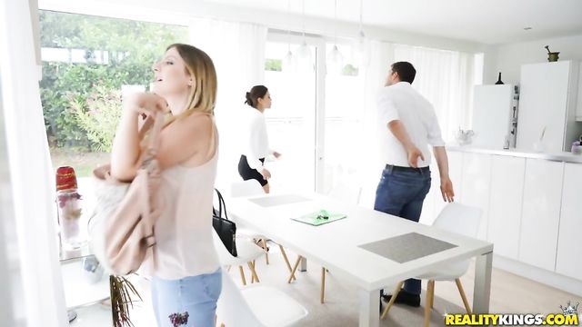 Alyssa has the PERFECT house for our cute couple, but she's always eager to earn a little victory commission… A cum trophy for a possible sale, if you will! Alyssa hounds Kristoff under the table, over the counter, in the shower… Nothing is off-limits for this cock-hungry real estate-cum-escort agent! And can you really blame him for being unable to resist her in that almost transparent blouse? Tight skirt riding up her plump ass? Eager mouth swallowing his cock whole? No, of course not. Sign here.