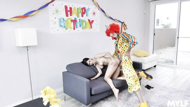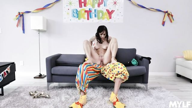 Beautiful MILF Alana Cruise hired a clown for a party and she is pissed when he shows up late! All the guests are gone, and the guy does not even have a good explanation. Everything he says just sounds like clown talk! But this guy seems to have some kind of magical power. Not only can he poof into thin air, but he can also convince this pissed MILF to change her tune and suck his thick clown cock! She slides it in her mouth and then rips her panties off to pleasure his hard prick. Then, she stuffs it inside her dripping MILF slit and lets him go to town on her tight twat. I guess it pays to be a clown sometimes!