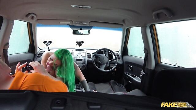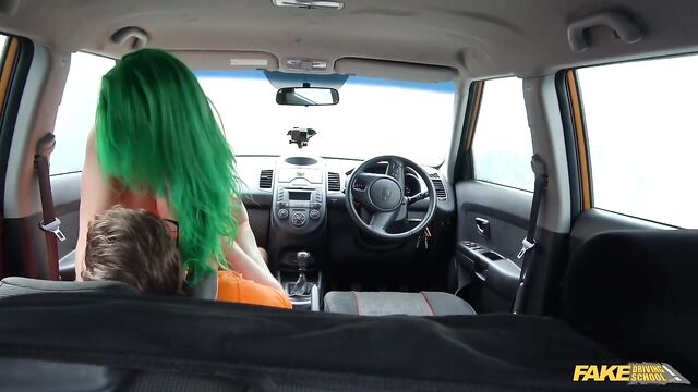 I wasn't exactly thrilled to find out Phoenix Madina was my student today in the Mean Orange Machine. Sure, we had gone out a few times, but after our last date I had to head home early because of a combination of mean friends and loud music. I was a bit flustered during the lesson, but Phoenix agreed to another date that was more my speed...karaoke! That cheered me right up, so we headed out onto the road and she did great for 99% of the lesson until she almost hit a gate! I was right angry, which apparently turned Phoenix on so much she had to suck my cock. Fair play, especially when she took her big tits out. Phoenix bounced her arse up and down on my lap and I fucked her pussy hard, made her squirt, and then came into her mouth!
