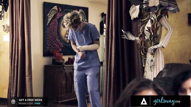 Jelena Jensen, Adriana Chechik, Carter Cruise and Tara Morgan fingering screw from Girls Way by Girls Way