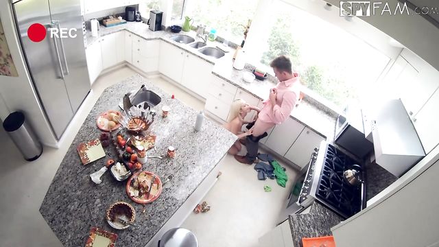 Stepsis gets fucked and facialed in the kitchen by her stepbro on Thanksgiving.