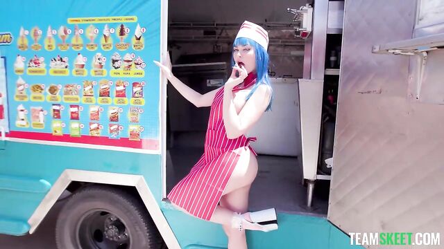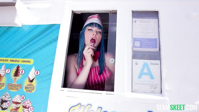 What’s up, TeamSkeet fans? Ready for a sexy new All-Stars entry? This one features the stunning babe Jewelz Blu, an authentic ambassador of all things naughty. For this jaw-dropping interview, we took Jewelz to an ice cream track. Dressed provocatively and savoring a tasty treat, Jewelz answers the most scandalous questions and shares her love for her fans, gifting them a very hot fuck sesh in the ice cream truck with Mike after her interview.