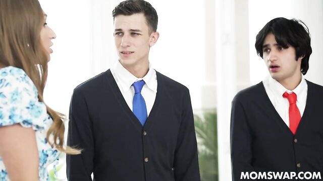 - Description: Elias and Parker are two friends that are afraid to go to school, so they pretend to be sick so their stepmoms Payton and Skylar don’t force them to go. Unfortunately, the principal calls them and blows up their whole cover, so the boys need to come clean about their situation. Turns out Parker and Elias are constantly being bullied and called pussies because they cannot talk to girls, so their stepmoms will have to step up to boost their confidence and help them get along with women.