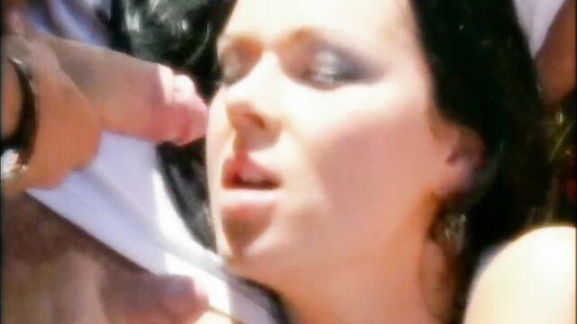 Suzie Diamond is a classy babe who starts the scene by masturbating, rubbing her tight wet pussy and getting herself ready for what is to cum. In this Private classic, “Open Legs, Open Minds” Suzie Diamond opens her throat and takes three men for a gangbang session. After choking on some dick, she spreads her legs and takes a pounding from each of the guys, taking turns giving them blowjobs. Things get even more X rated when this gang bang slut spreads her cheeks and takes some hard anal while giving one guy a rim job. After some more anal spit roasting, and with her mouth filled with cock, this slut is fully stuffed with some rough DP action. This nasty brunette chick is only satisfied when she has three big dicks deep inside her. Suzie finishes things off by taking a triple cumshot, one to the face, one to the tits and one to the assl, plenty of cum to go round for this spunk drunk hussie.