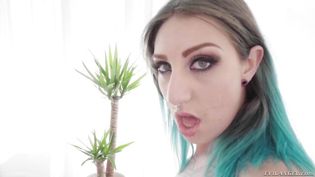 Exotic Euro punkette Yuno Love playfully teases in anticipation of a sweltering fuck from Nacho Vidal. The mad director worships her body, and after she peels her panties from her plump rump, he rims her ass. He holds her arms behind her back as he pounds her pussy, and the blue-haired babe rides his boner in orgasmic bliss. After a vicious cunt clobbering, Yuno sits in Nacho's lap, sucking and jacking him till he spurts streams of spunk.