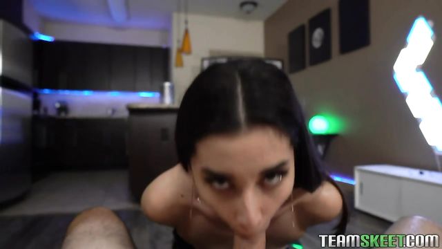 Her name is Aria Lee, and she is a stunning Asian chick with long legs and a slamming body to boot. She has a hunger for big dick in her young, wet mouth, and we here at TeamSkeet are happy to help her satisfy her cravings. She is originally from Arizona, and that is where she learned how to suck dick like a pro. She is so skilled that she can say the ABCs while taking my dick all the way down her throat! And the way she lets her spit cover my cock, you can tell Aria is truly passionate about boner pleasing. What a catch!
