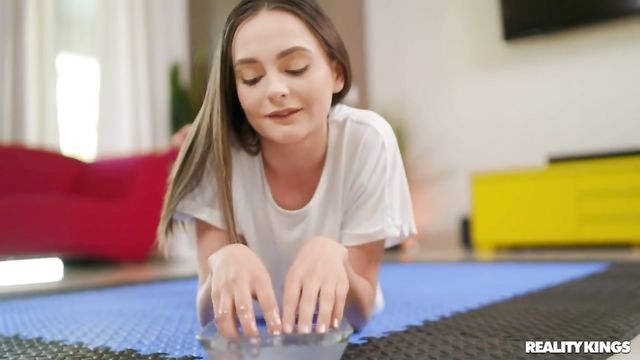 Fresh-faced cutie, Aften Opal, wants to show her lovely little body off to you – and by George, that's exactly what she's going to do! In a white thong and t-shirt, she shakes her round ass, squeezes her perfect tits and gives you tiny peaks of her wet little pussy. Then, hunky Zac Wild gets in on the action. Aften drenches her tits with oil, and does the same to this lucky man before she gives him a deep, satisfying massage. But that's not the only thing going deep in this video, because soon enough Aften’s got Zac's big cock deep in her mouth for a sloppy wet blowjob. With every inch of their skin slicked down and slippery with oil, they fuck on the living room floor. If this doesn't make you want to go out and buy a bottle of oil, I don't know what will!