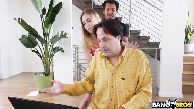 Haley Reed has her pornstar boyfriend come over to meet her dad. The dad is unpleased that his daughter is dating this guy and lets him know about it. Kinky Haley starts messing around with her man’s cock behind her dad’s back. She lets her bf how much she loves his big black cock before she starts sucking him off. They end up fucking secretly behind her dad’s back from multiple positions until she takes gets her pretty face creamed.