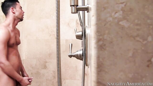 Brandi gets home from work and catches her son's friend in the shower. She starts to have a conversation with him while she's getting herself undressed. After she's completely naked, she lets Seth know that her son won't be back for at least a hour and gets into the shower with him. Seth is a little embarrassed because she caught him stroking his junk. Brandi then offers to use her hands as she drops down to her knees. Seth gives her the obligatory, what about your son but, deep down inside he knows having a chance to fuck Brandi is like a dream come true.