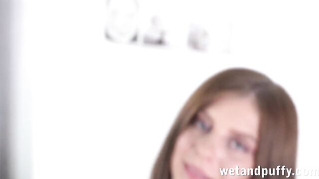 Cute brunette Tessa shows off her figure in tiny denim hotpants and a white cropped top. She rubs her puffy pussy through the denim fabric and pulls down her top to squeeze her natural tits together. Tessa strips from her shorts and reveals her white lingerie, then continues to take off her panties. Once she sits up on a glass table, this horny newcomer touches herself and fingers her juicy puffy pussy. Tessa gets hold of a pussy pump and sucks her labia up inside the tube. She slips her pussy onto a rubber dildo and rides it, speeding up for even more pleasure then moves onto the fluffy rug where she pounds herself in doggystyle and masturbates at the same time to orgasm!