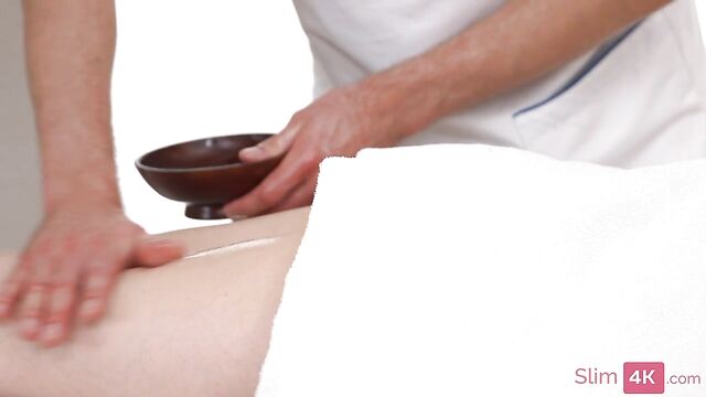 A teen with green hair came to the massage room. Having stripped naked, she took a comfortable position and the masseur began his work. The cutie's body wriggled from the caresses of the hands of an experienced masseur. Soon she got excited and gave herself to him in different flexible positions, eventually receiving sperm in her pussy.