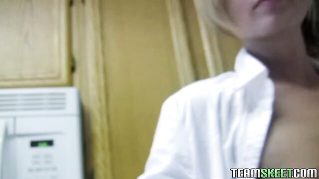 Let me introduce you to Paris Love! My new favorite little eighteen year old hottie. She adorable face and tight body are sure to make you feel the same as me. Watch her strip down in the kitchen after school to relax!