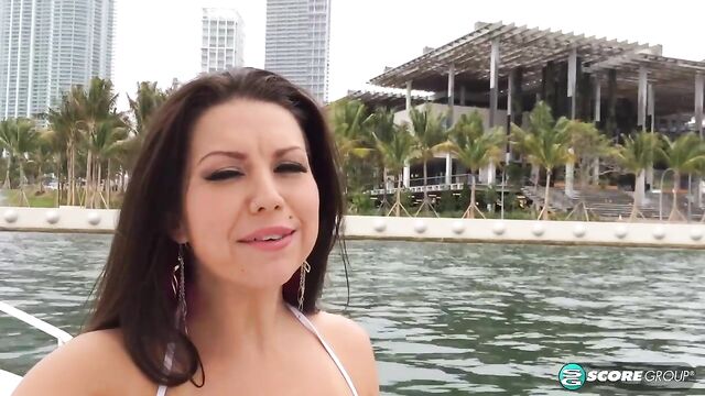 If there's a metal pole within reach, Sheridan Love will use it to pole-dance! Even if the pole's on a boat called, appropriately enough, "Wet & Slippery." Sheridan dons her skimpy bikini for a cruise around scenic Miami, although the city does not compare to her for scenic views.