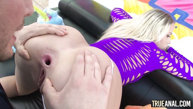 Layla Love’s first anal went much better than expected. This babe’s ass was able to handle a massive, rock hard dick pounding away at it. She moans in pleasure as that cock goes from ass to pussy, and returns the favor of a rim-job by giving one back. Finally, a cumshot into her gaping asshole finishes off this hot scene.