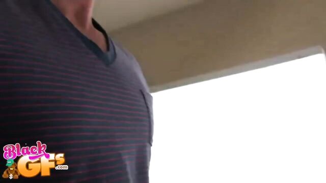 Chanell is an unbelievably sexy ebony girlfriend. She let's us know right at the beginning of this GFR video that it's for her BF, Brian. Then she goes on to do some very impressive booty shaking all while wearing a pair of crotch-less nylons. It's about that time Brian walks in and catches Chanell right in the middle of making her hot, homemade video for him. He wastes no time inspecting the hole in her pants and takes full advantage. Pussy exposed, he rubs Chanell's snatch until it's nice and wet, then rips open her nylons to expose her perfect ass for the taking. She gets so horny, she can't help but drop his pants and suck his dick. Brian pays the favor back and gives her the stroking of her life. Chanell loves every moment and even gets a big load blown all over her booty. Lucky for us the camera was recording the whole time.