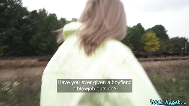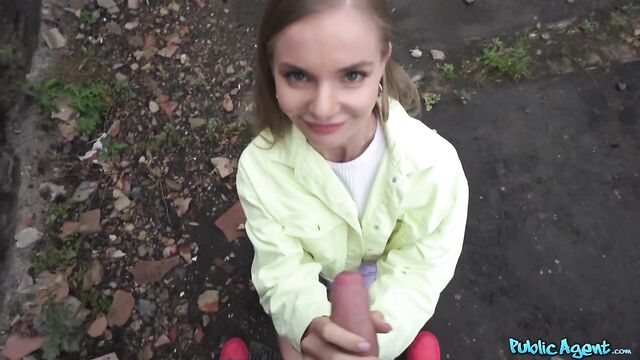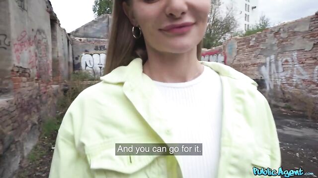 The other day, I came across this pretty brunette at the train station, and I asked if she would be happy to stop and chat. Fibi Euro agreed to show me her small, natural boobs in exchange for cash, and then I offered the petite babe more euros for a blowjob. We found somewhere quiet, and Fibi deepthroated my rock-hard dick before sticking out her pert ass to take a doggystyle pounding! Next, the skinny slut rode me in cowgirl, and then I flipped her over and banged her tight pussy in missionary position. She moaned loudly as she reached orgasm, and then I pulled out and spilled a thick load all over her hot body!