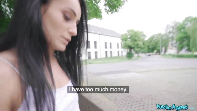 I saw petite blonde Lexi Dona in a bit of a rush, but she was so hot, so I stopped her. She said I could only have a minute of her time, so I told her I had just received my stimulus money. I was looking for someone to share it with, and Lexi could be that person. I offered her 4000 crowns to flash her boobs real quick, then even more to lift her skirt and flash her firm booty. Lexi liked our little game, so I tempted fate and asked her if she would give me a blowjob. Lexi said she liked big dicks, so I showed her my fat cock. We headed off to a secluded location where I ate her pussy and ass from behind, then she got sloppy sucking my dick! I fucked Lexi doggystyle, then the brunette rode my cock, before begging me to give her my load in a facial.