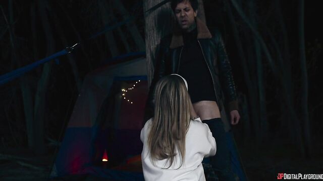 Reunions are a time to brag to all your old friends about how great things are going... even when it's far from the truth. High school sweethearts Lisa and David (Aubree Valentine and Alex Jones) seem to be as in love as ever, but tensions roil beneath the surface, while Chrissy and Allan (Anna Claire Clouds and Zac Wild) can't say two words without arguing. Still, as the four finally make it to the campsite they're ready for a weekend of fun... at least until Marcy and Frank (Lily Lou and Small Hands) arrive. Frank gets upset with a brush-off from David and storms away from the campfire, and Chrissy goes after him... and before long the bad boy is reminding the preppy blonde of old times as she sucks his cock, then fucks him in the tent. But cheating is only the beginning of these sweethearts' worries...