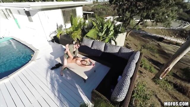 The drone hunter crew headed out to the country to get their sexiest footage yet, featuring busty blonde Olivia Austin. She took his dick deep in her mouth and pussy right out in the open, and then got a nice cumshot all over her huge titties!
