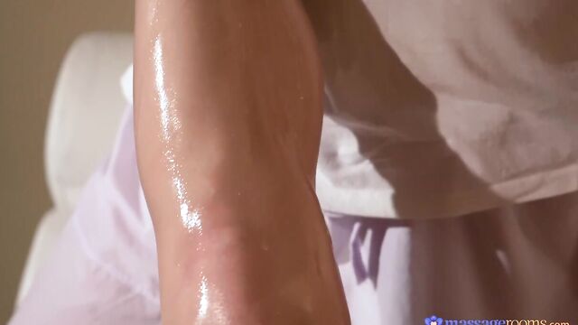During a holiday in Prague, Russian vixen Jessica Lincoln decides to visit the infamous SexyHub spa. The lucky brunette is paired up with masseur Steve for a sensual rub-down. As warm oil is massaged into her lovely body, little moans of pleasure escape Jessica's lips, especially when Steve caresses her little tits and perfect pussy. Encouraged by her obvious pleasure, the handsome Czech gets even more handsy with his client, giving her a rough finger-banging and pussy-licking. But Jessica wants even more! The insatiable Slav sticks her sweet ass into the air for a Doggystyle fuck, which has her cumming with every thrust of Steve's thick cock.