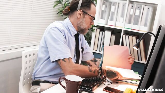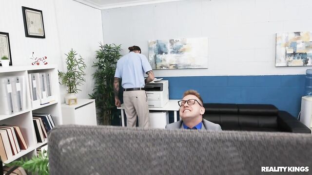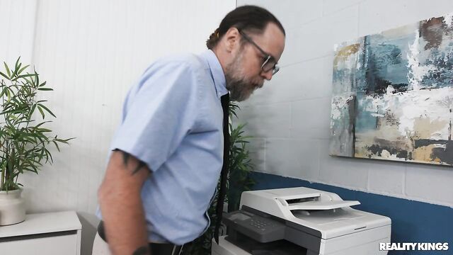 Van Wylde's boss is on his ass for the report he's working on... but his hot coworker, Kira Noir, is trying to be on his dick! The horny hottie flashes Van her tits and openly touches herself, then sneakily sucks his cock and titty-fucks him under the desk. She tells her boyfriend she has to work late, then works it as she rides Van's dick. Van fucks her over the copier, and when their boss finally leaves, they can screw all over the office!