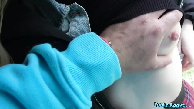 Misha is a beautiful student studying at university, but her parents are rich and send her lots of money, so she was a hard sell. A gorgeous young blonde in a schoolgirl skirt, but man, could she negotiate! She showed me her puffy boobs and tight student pussy for some fast cash, and she seemed to really enjoy it. I told her she made my dick hard, and she asked to see, so I whipped him out for her right on the side of the road. She told me she liked my big dick, so I asked if she would suck him for me. The naughty stranger almost fit it all in her mouth! Oh, I loved it! We were both so turned on, we fucked by the river with Misha riding me, her panties pulled to the side. What a lovely girl! And how lovely she looked with my cum all over her face!