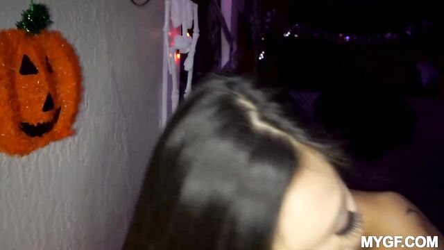 Vina Sky is out trick or treating in her naughty cop uniform! She is a wild daredevil and she flashes her hot body for the cars passing by! She goes into the haunted house and gets extra horny and begs for her tight pussy to be fucked! She gets a nice treat of a big dick pounding out her tight hole as she shows just how controlling she can be as a sexy Mrs. Officer!