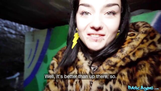I’m always happy to help out a damsel in distress, so when hot French babe Crystal Cherry needed money for a taxi, I jumped at the opportunity. In return for cash, Crystal flashed me her pierced tits and thong-clad booty, which got my dick hard. We found a more secluded place where the stocking-clad nymph gave me an incredible blowjob, and then I banged her in doggystyle! Next, I flipped Crystal over and penetrated her in missionary position while she stroked her clit to orgasm, and then the tattooed Euro sucked on my cock some more. After riding me in cowgirl, Crystal spread her legs and I fucked her again in missionary. To finish, the raven-haired beauty wanked me off until I came directly on her tongue, and she swallowed every drop!