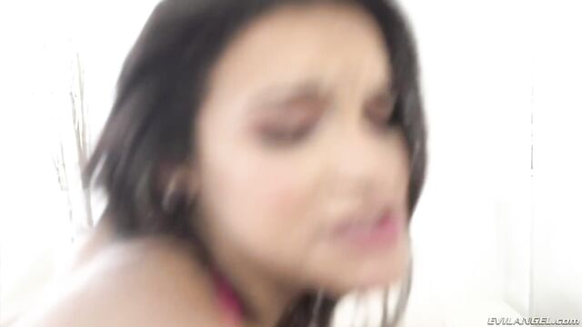 Cute and tiny, brunette doll Eden Sin strokes her hairless pussy while thinking about Ramon Nomar's big dick. The tattooed young slut sucks on a dildo and shoves it inside her little butt. Drilling both holes with phallic toys, Eden slurps on Ramon's erect meat. She mounts him for a nasty anal ride, bounces her booty on his thick, uncut schlong and licks it clean, ass-to-mouth. Eden swallows a hot load of spunk.