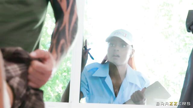 Sexy Destiny Mira is making her rounds, delivering letters, parcels, packages, and making heads turn! In her cute mail uniform, Destiny catches eyes and breaks hearts. When Destiny accidentally stumbles upon Scott Nails and his girlfriend having sex, she wants in on the action! When Scott's girlfriend leaves the room, petite Destiny hops in through the bedroom window and the fun begins. Destiny will deliver Scott's mail, no problem, but she's going to enjoy his package before she does!