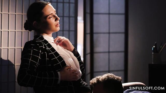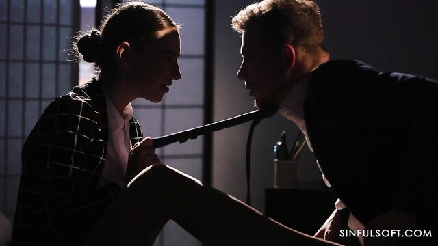 Wow, that meeting was boring! Sakura needs some excitement and has a wild idea: she goes over to her coworker, removes her underwear and demands his face... right between her legs.