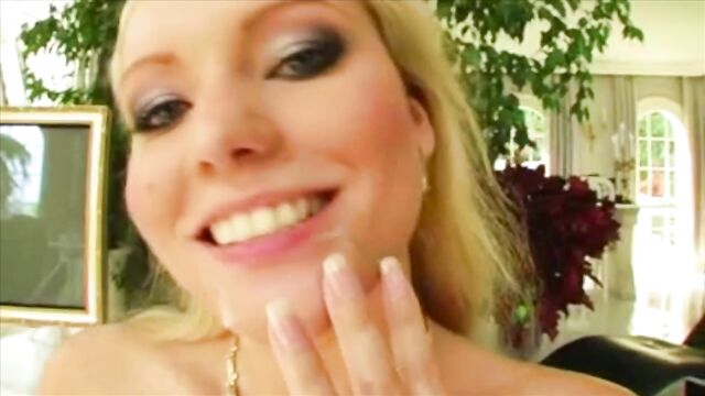 - Description: A brand new blonde babe gets her tiny tight asshole stretched to the max by two large cocks. This busty beauty gets it straight to the ass and swallows two loads.