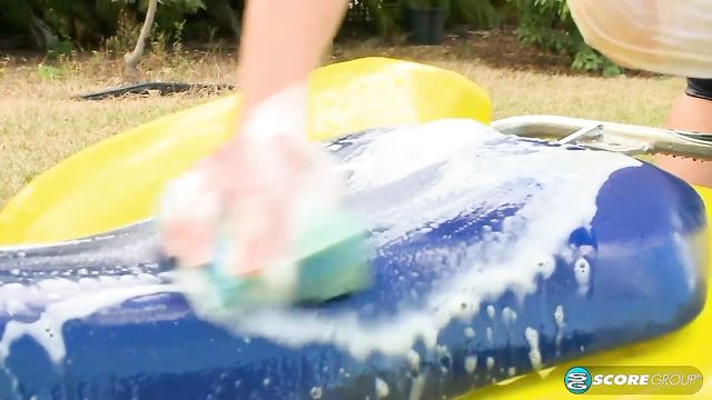 Alia Janine hates to see dirty things. She has a beautiful, busty body and appreciates beauty all around her. That's why she had to do something about this dirty ATV, a beauty of mechanical engineering in the same way that Alia's chassis is a beauty of nature.