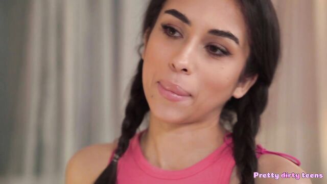 Bespectacled nerd Don Diego always goes above and beyond when it cums to pleasing his friend Tasha Lustn, offering to do her homework, lend her money, and even handing over his car keys. When the sexy brunette catches Don jerking off to a photo of her, she seduces the horny hunk and invites him to eat out her tight pussy! Tasha even returns the favour this time and treats Don to a deepthroat blowjob before bouncing on his long, thick dick in cowgirl. Afterwards, Tasha sticks out her perky ass and takes a hard doggystyle pounding, and then the pair have a side fuck on the sofa. To finish, the muscular stud pummels Tasha in missionary position, and then he spunks in her cum-hungry mouth!