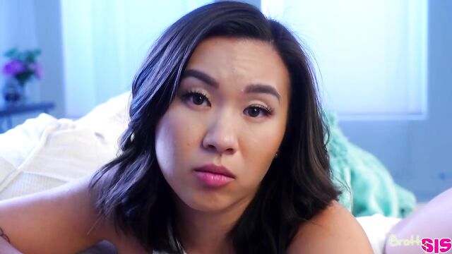 Kimmy Kimm is making food for her slumber party tonight when her stepbro Parker Ambrose tries to eat her food. Kimmy tells him that he can't have anything of hers, not her food and not her friends. After claiming that she'll fuck Parker, Kimmy flounces off and leaves her stepbrother very confused.Later, Kimmy joins Parker on the couch and complains about her friend and her crush liking each other. Parker suggests Kimmy fuck him so her crush becomes jealous. He has played right into Kimmy's plans, so she pounces on him with eagerness. She flashes her tits and goes for a sloppy BJ that she's been craving. Kimmy even gets her pussy eaten for her trouble.Crawling into Parker's lap, Kimmy rides him like the cowgirl she wants to be. She turns around for some reverse cowgirl fun, then gets on her knees so Parker can really give it to her nice and rough from behind. They finish with Kimmy on her back, her ankles up by her shoulders. She watches with do me eyes as Parker pulls out and nuts on her belly, then offers him a sleepover in his room.