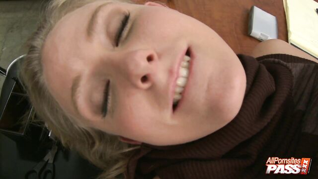 Natalie Norton is the hottest chick in the office and obviouslu, everyone wants to bang her. You'll get to watch this pretty blonde hook up with her co-worker for some nice after-work fun. Natalie gives us a great view of her big breasts while she gets rutted on the office table.