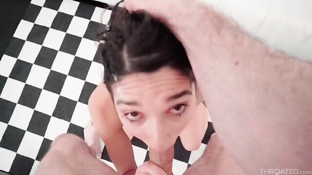 Aria Sloane came from the bay area to show off her sucking skills on John Strong's prick. She likes it sloppy, she enjoys playing with the balls and she specially gets turned on by getting throat fucked.