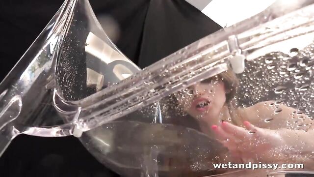 It has been a couple of years since we last saw Sexy brunette Susan Ayn and we are so glad she has come back to us. The year shave been kind and this beautiful babe looks sexy as ever! Dressed in a fishnet top and hotpants, she teases on a glass chair before sitting on it and lifting her legs before peeing her shorts! This naughty babe touches her crotch and licks her fingers then strips so that she can stretch her pussy with a metal speculum. Bending over, she releases another stream of piss onto the chair and tastes her juices before pouring the rest over her body. She gets hold of a stick-on flesh dildo and after sticking it to the chair, pisses all over it before inserting it into her eager hole! Finally this pee play babe catches more of her golden juices into a bowl, drinks it and pours it down her slender body to finish this watersports scene!